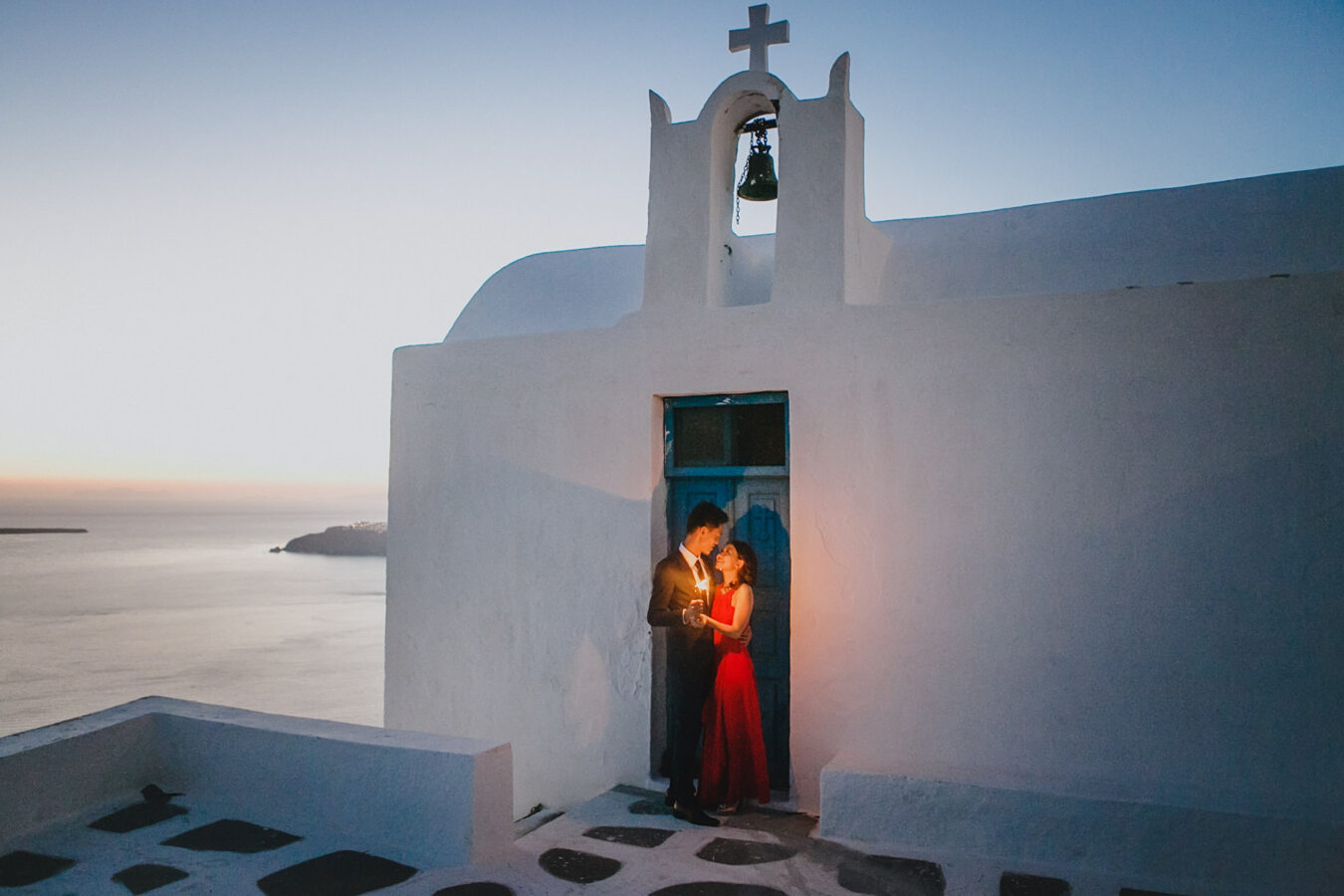 sunset elopement in Santorini